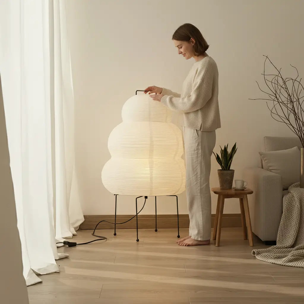 Its tiered silhouette diffuses light through layers of delicate rice paper, transforming your room into a calm and atmospheric retreat.